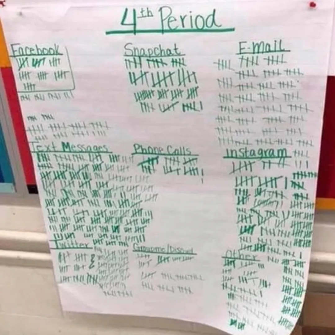 A teacher asked her students to leave their phones on loud during class. Each time a notification came in, they stood up and marked it under the correct category.
